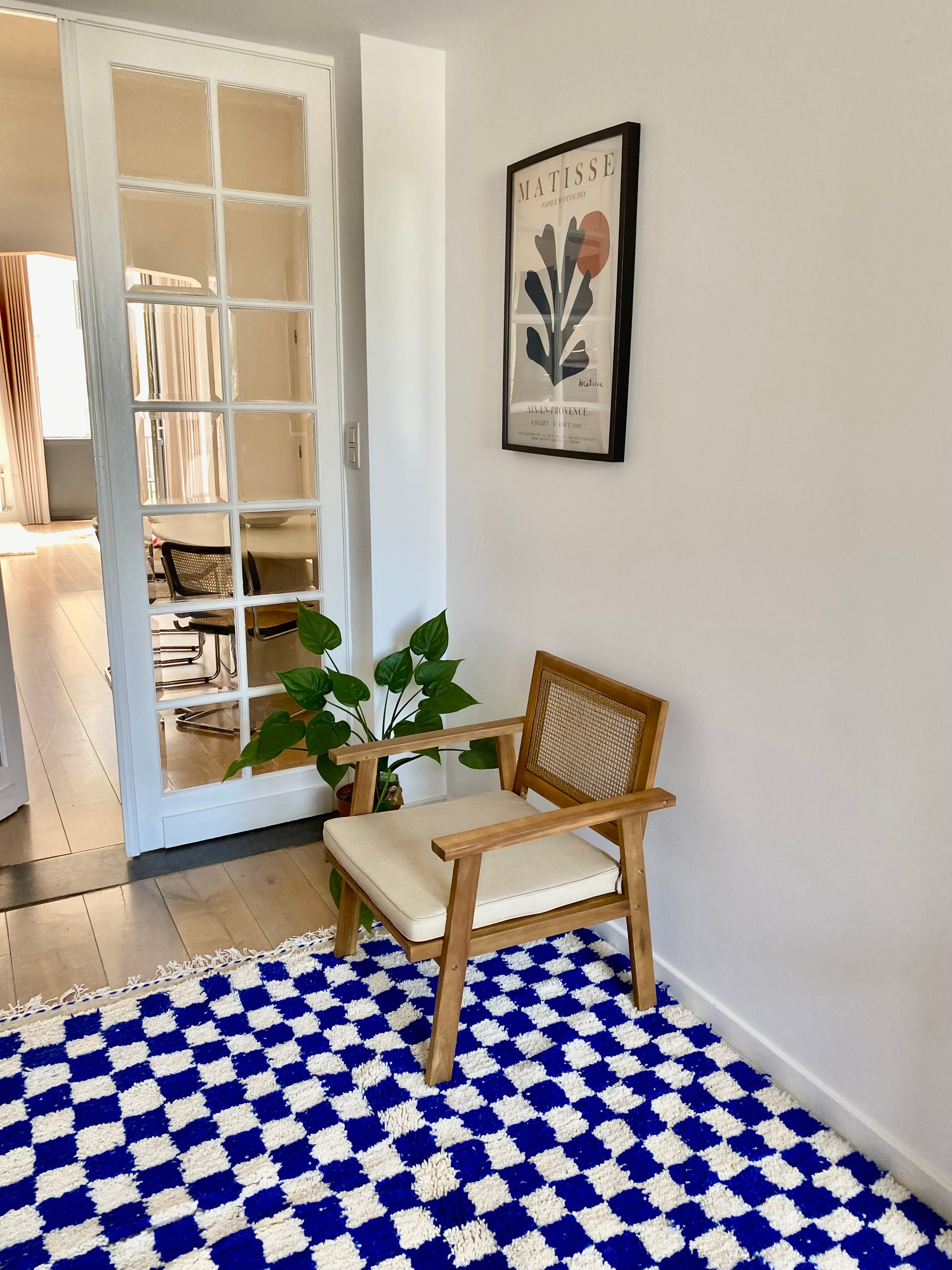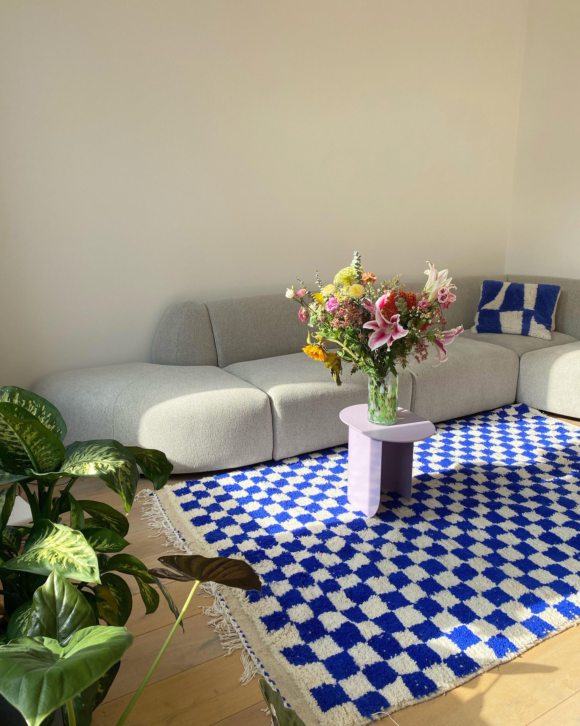 Add a pop of colour is your space with the captivating charm of a Moroccan blue checkered carpet. Its pattern, bright contrast and soft wool will make you feel like you just made a trip to medinas