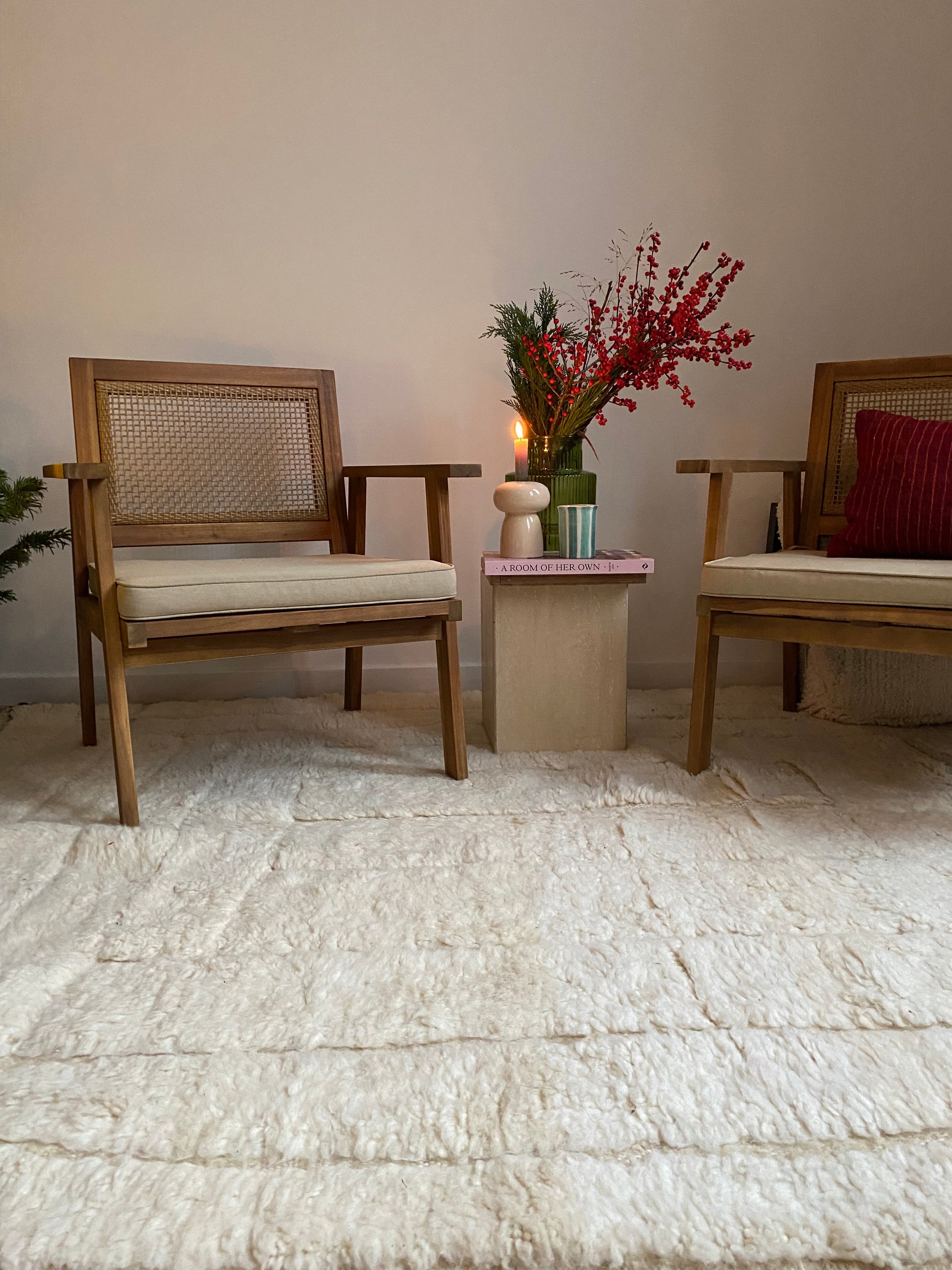 Add a timeless elegance to your space with the captivating charm of a Moroccan cream carpet. Its pattern and soft wool will make you feel like you just made a trip to medinas
