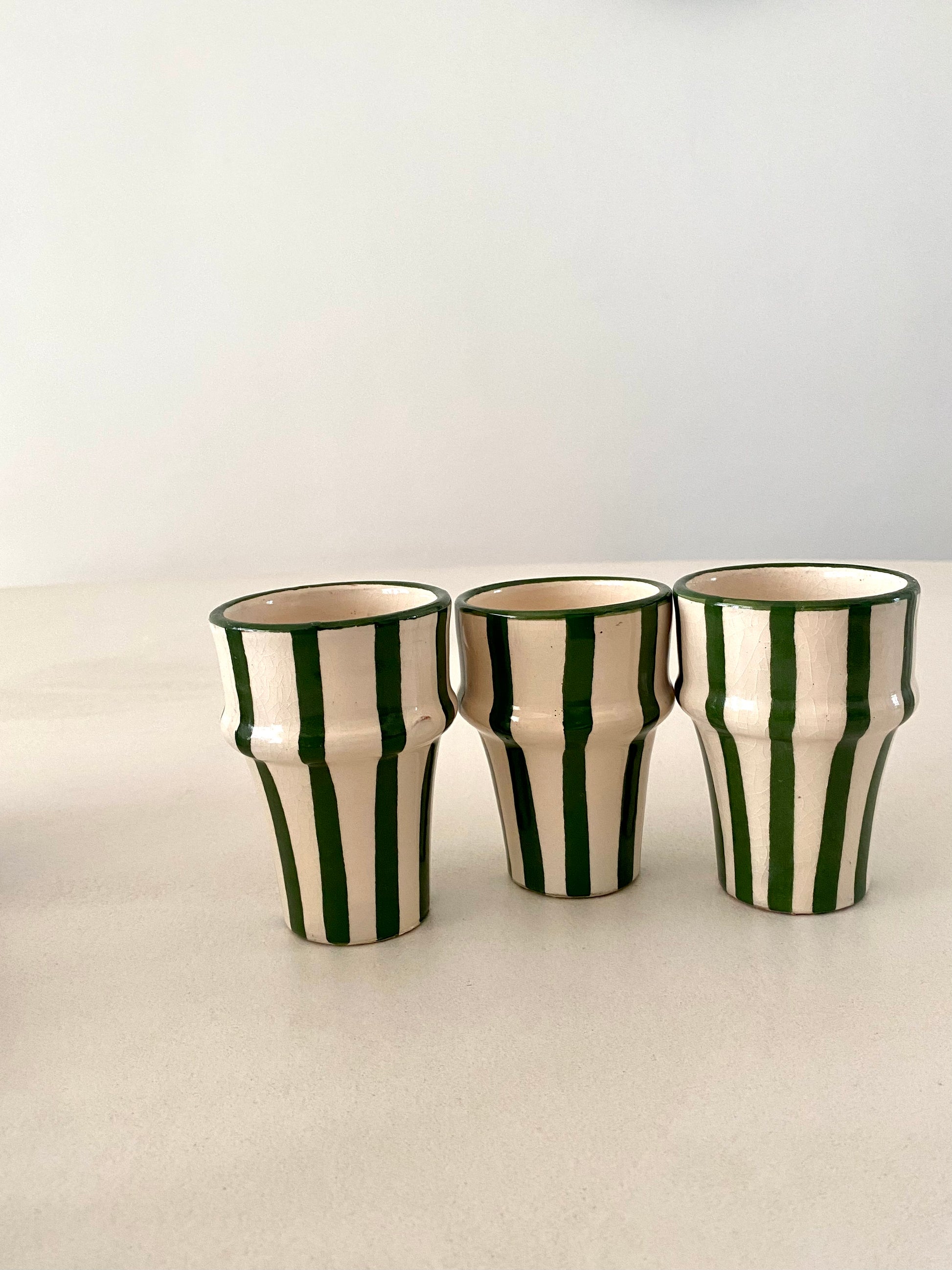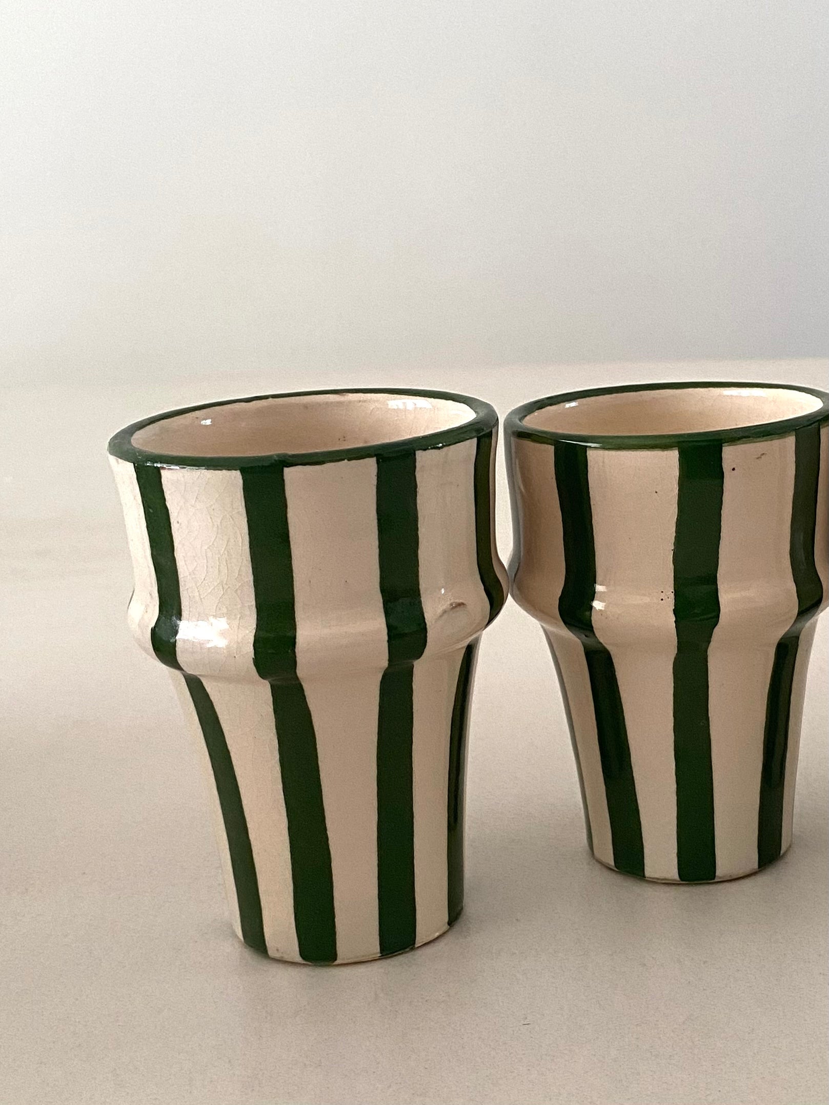 Green striped coffee cups (set of 2)