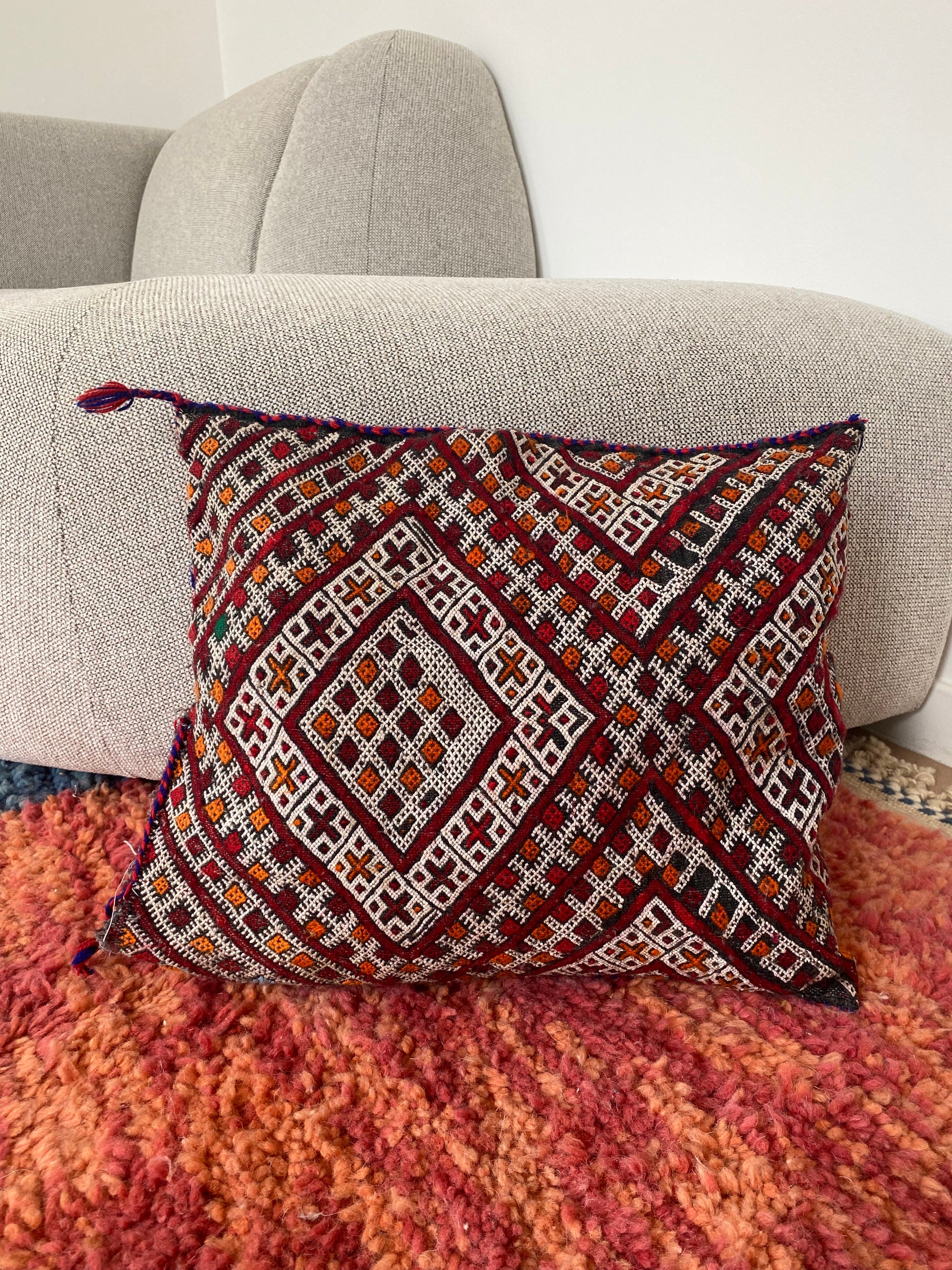 A colourful handmade Berber pillow brightens up any room with its lively patterns and vibrant colours! Change it up and choose switch sides if you like.