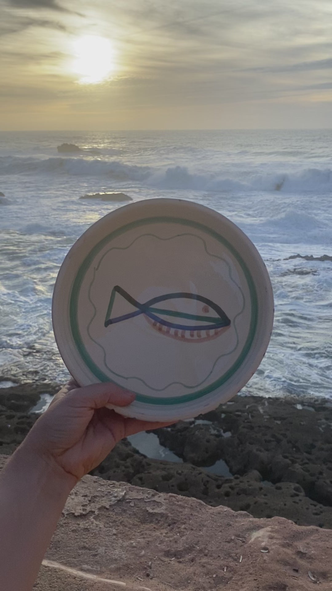 This handmade plate with colourful fish is crafted with care in Morocco, this piece is a unique work of art, which can be used for decorative purposes or as an aperitivo plate.
