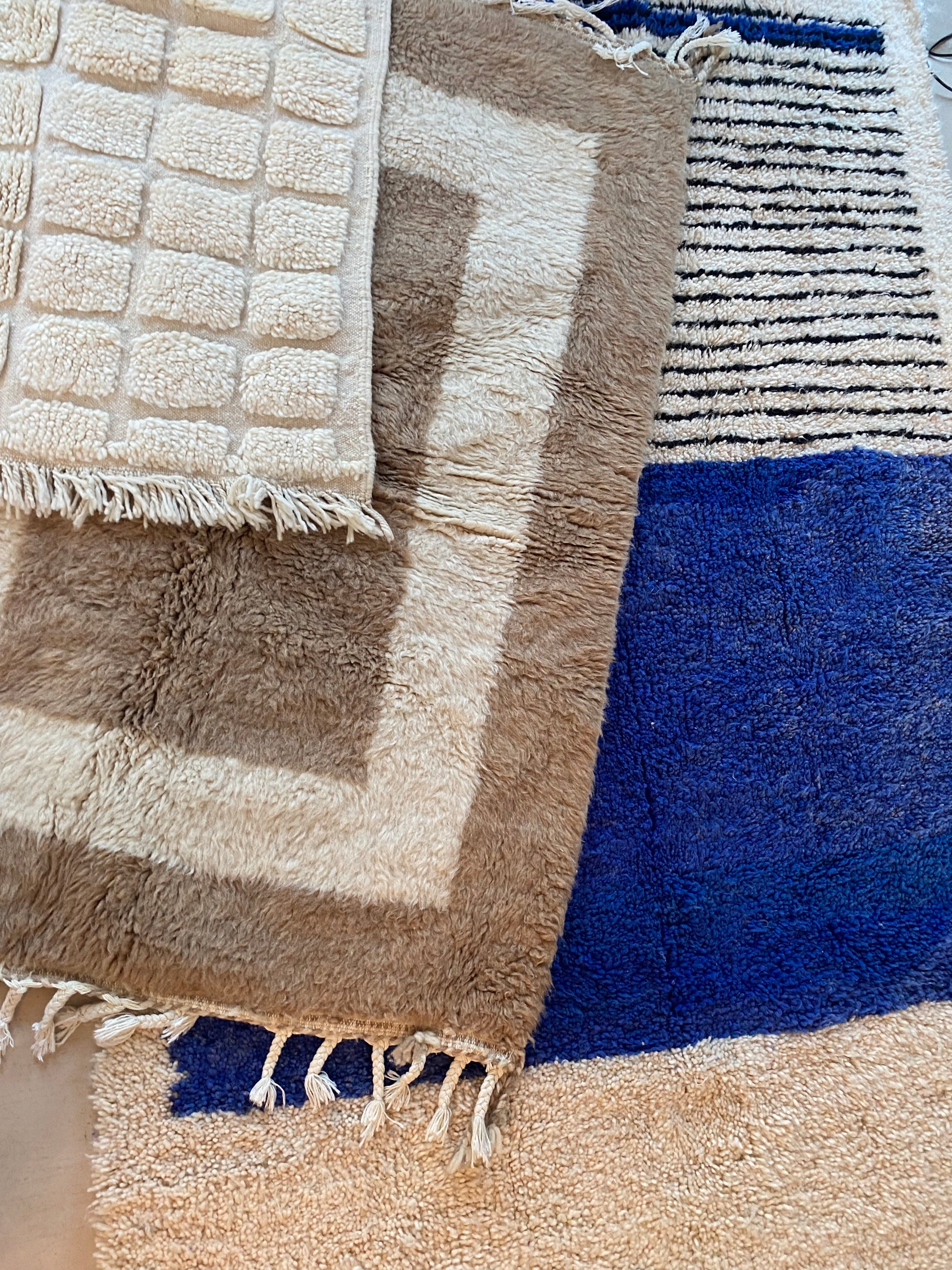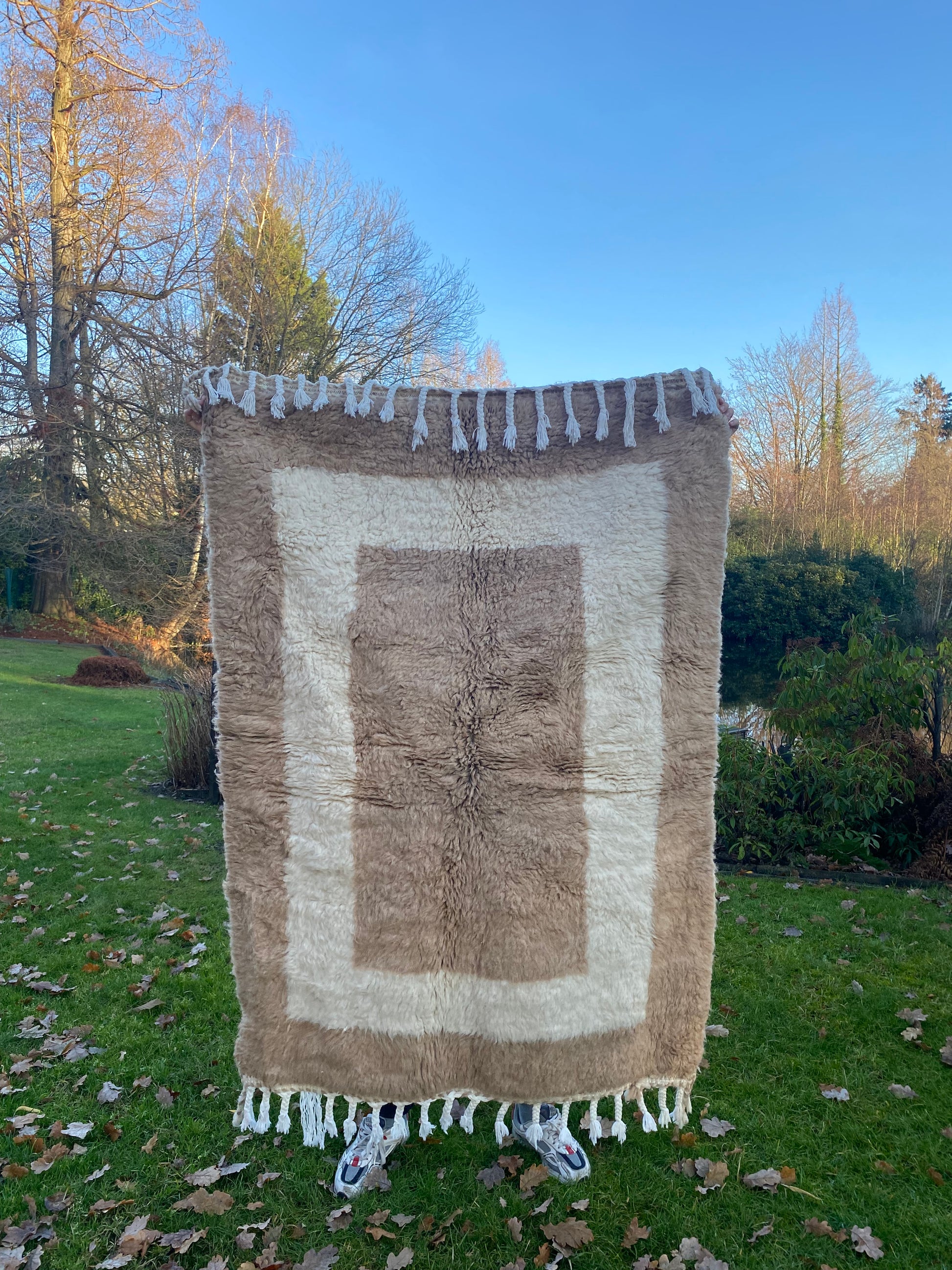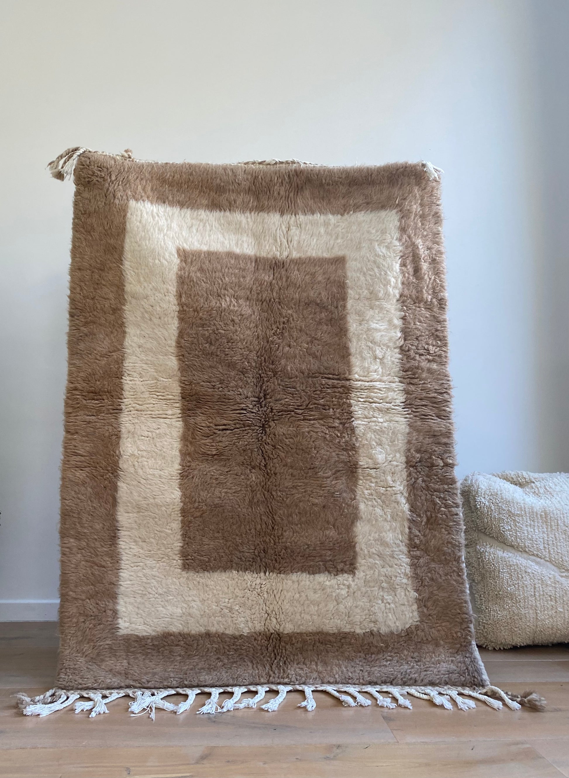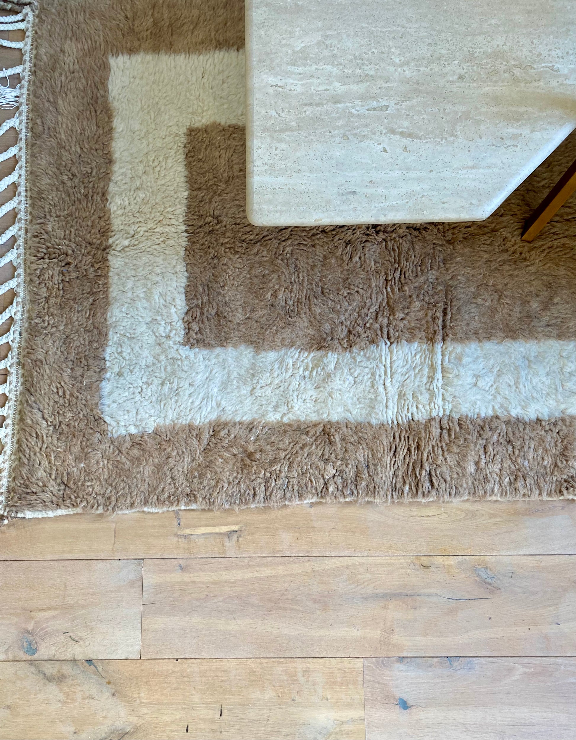 Add timeless elegance to your space with this fluffy sand colored carpet the abstract line designs, making it a real eye-catcher in your interior!