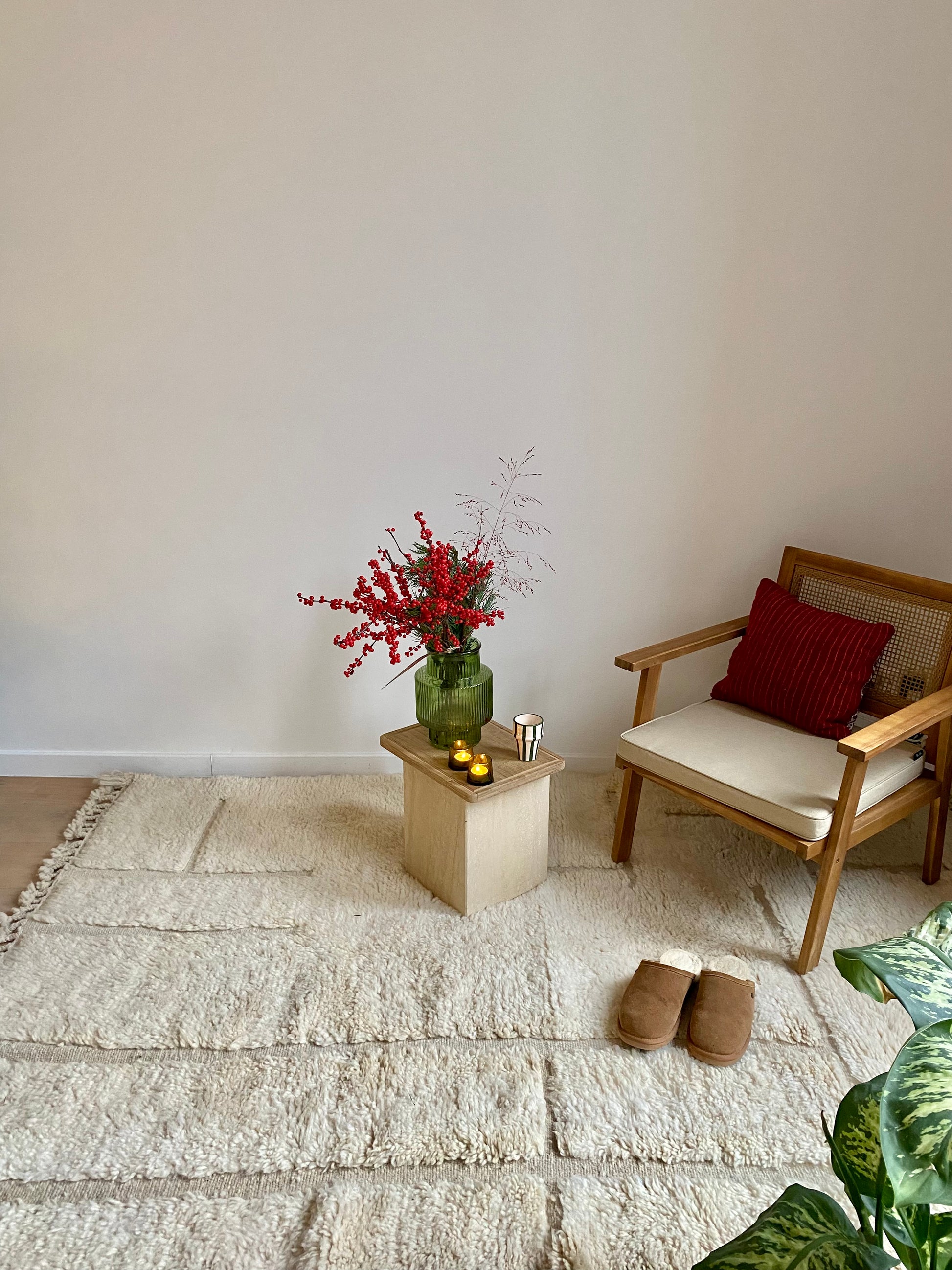 Add a timeless elegance to your space with the captivating charm of a Moroccan cream carpet. Its pattern and soft wool will make you feel like you just made a trip to medinas