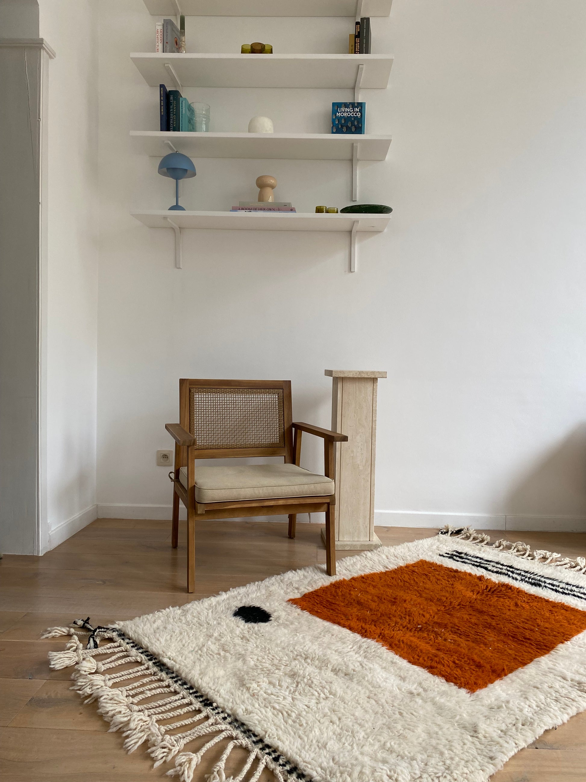 Add a some spice to your space with the captivating charm of a Berber rug. Its pattern, bright contrast and soft wool will make you feel like you just made a trip to medinas