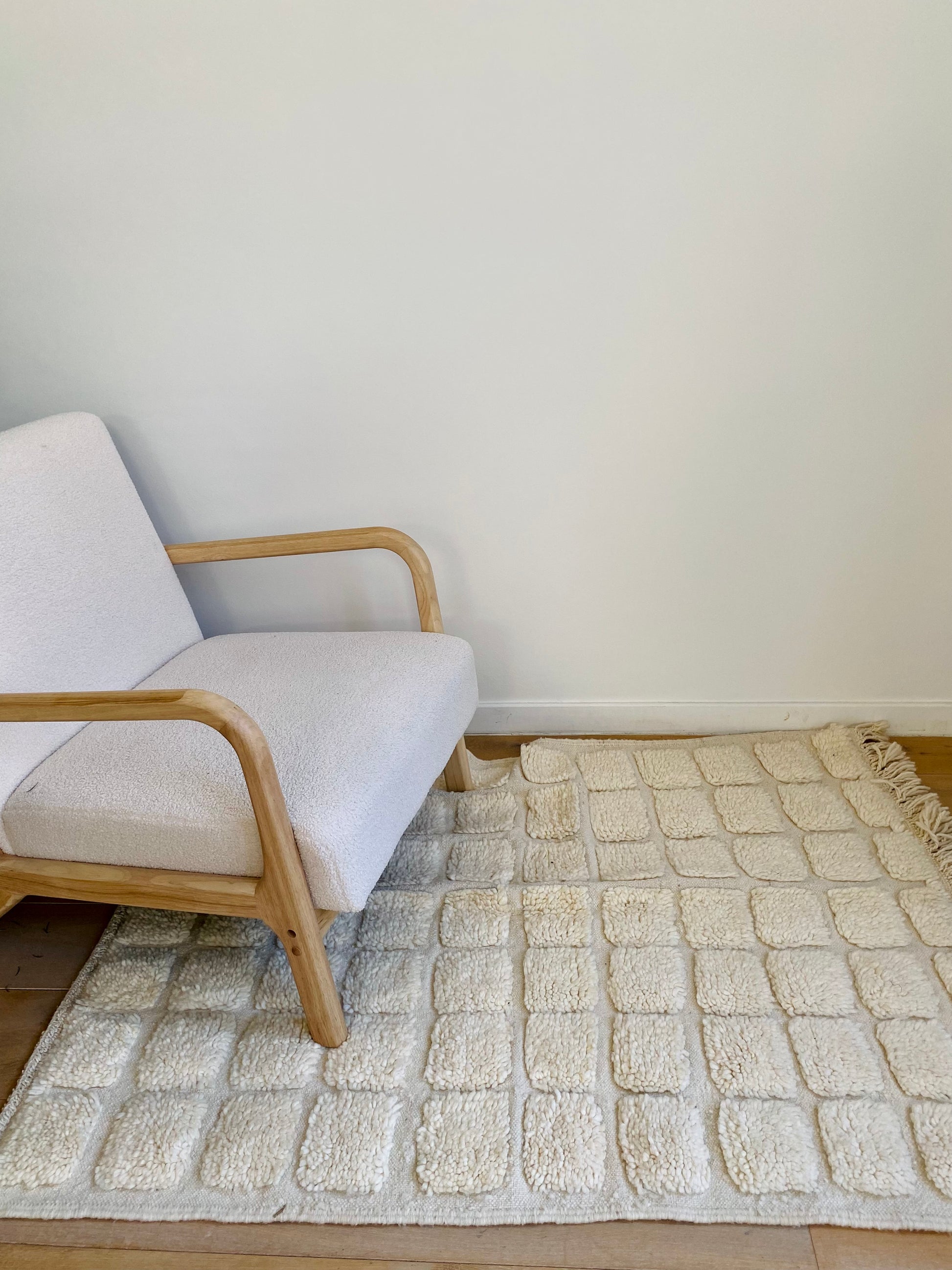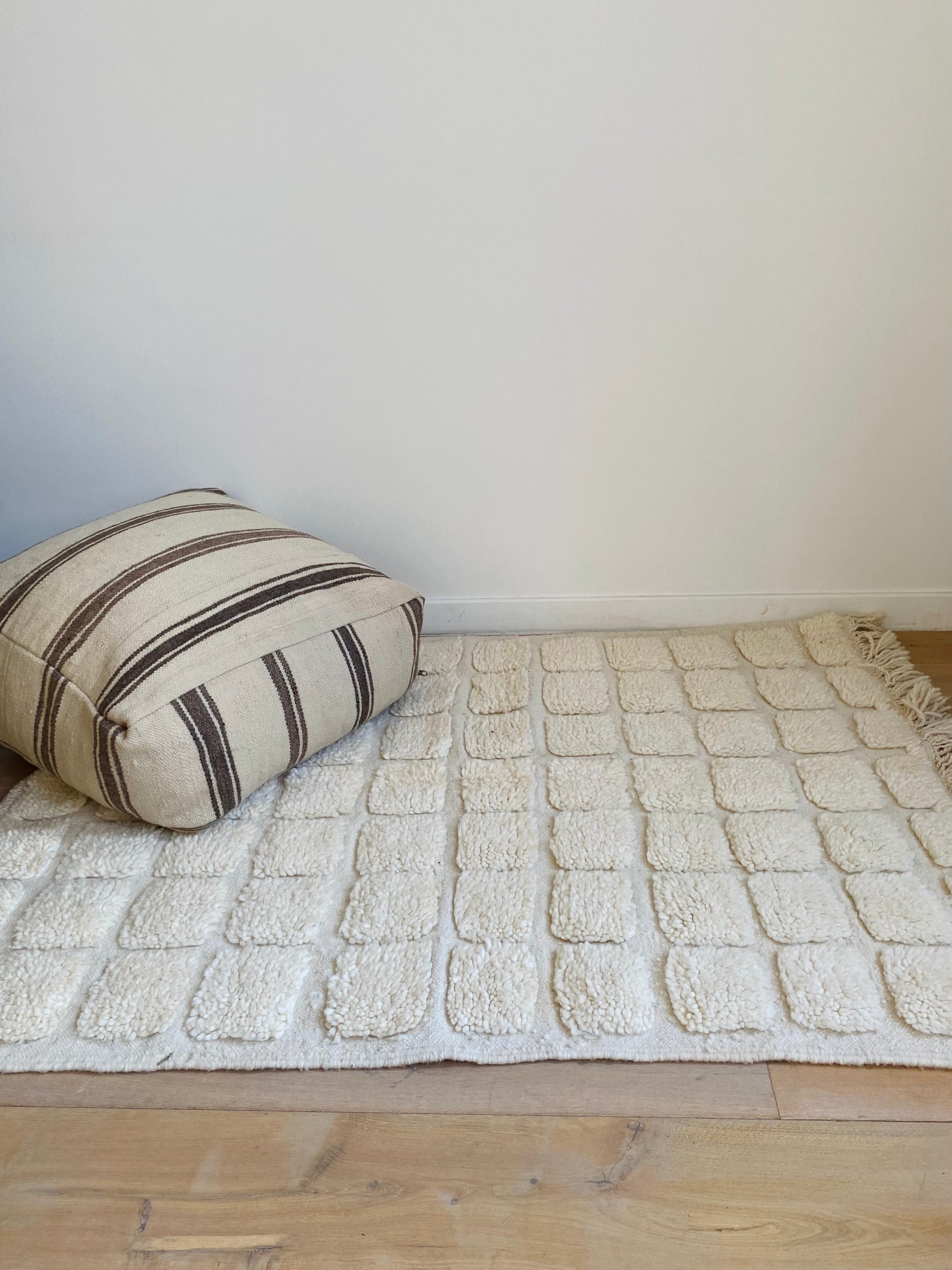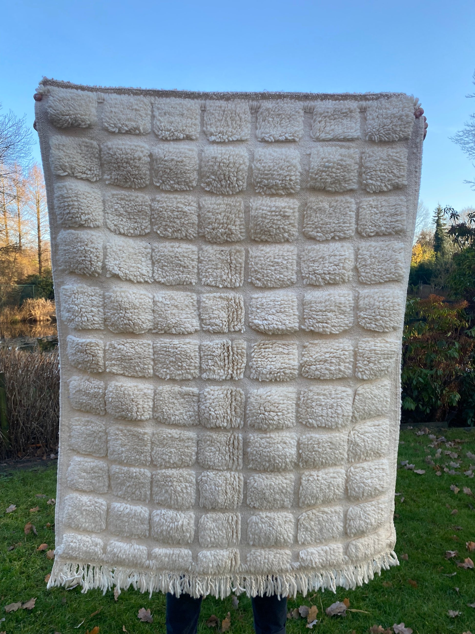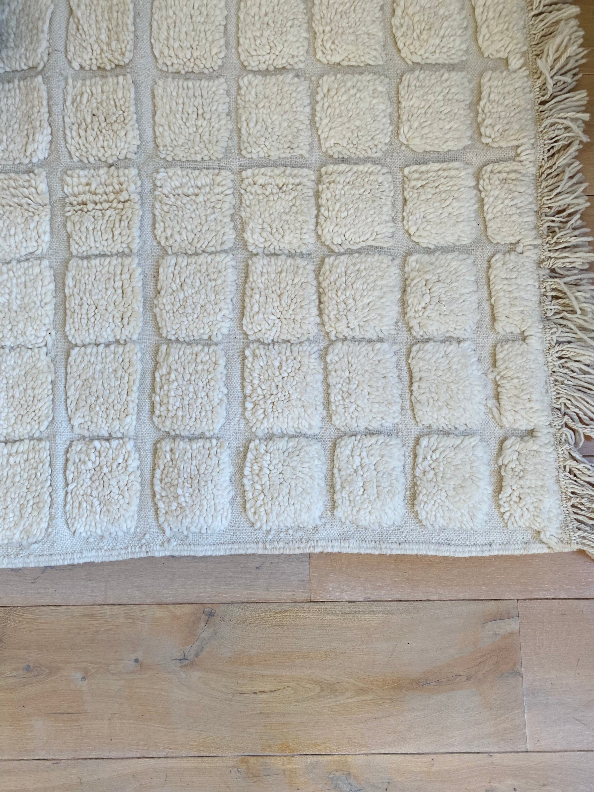 Add timeless elegance to your space with this fluffy cream carpet the abstract line designs, making it a real eye-catcher in your interior!